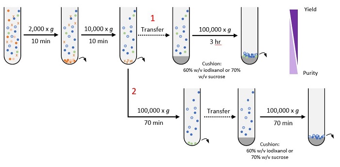 4. Isolation of exosomes. At this stage, the sample may still contain some larger vesicles but should be enriched for exosomes.